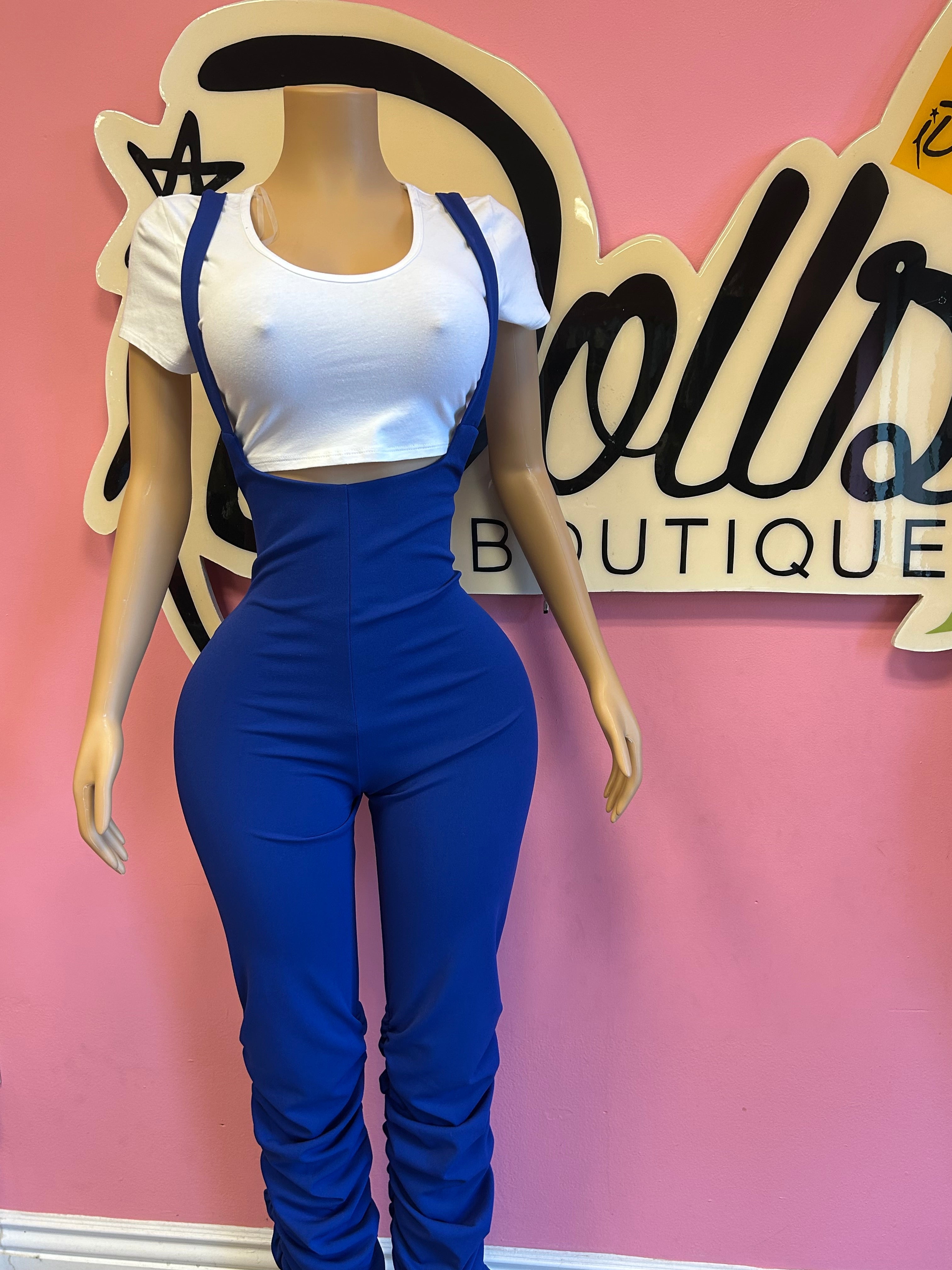 Make a powerful statement in the Bold Royale Suspender Set, a sleek and edgy two-piece designed for fearless fashionistas. Featuring high-waisted, stacked-leg trousers with built-in suspenders, this set sculpts your curves while adding a playful, retro-inspired touch. The pants hug the waist for a snatched silhouette, while the ruched detailing at the ankles elongates the legs. Paired with a fitted white crop top, this look is both casual and striking. Rock it with heels for a night out or sneakers for a streetwear-chic vibe. However you style it, expect to command attention in this bold, blue-hued ensemble! Mannequin wearing small Great stretch true to size