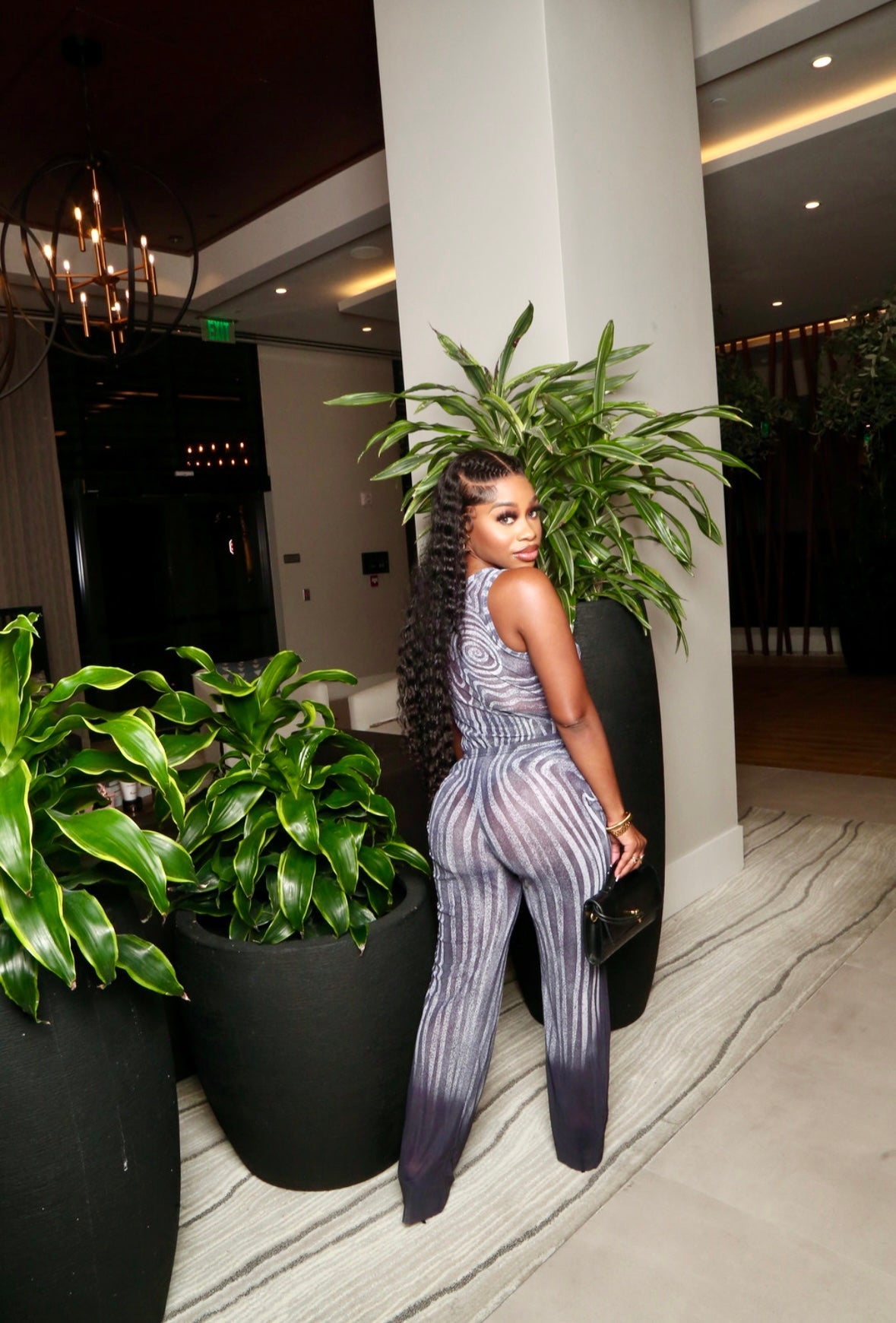 The Cosmic Illusion Set is sleek, daring, and made to captivate. This two-piece features a sleeveless high-neck crop top and matching body-hugging maxi skirt, both designed with a hypnotic swirl print in smoky gray and silver tones. The semi-sheer fabric adds sultry edge while the fitted silhouette enhances every curve. Perfect for vacation nights, rooftop events, or luxe evenings out — pair with strappy heels and a mini bag for an effortlessly bold statement.