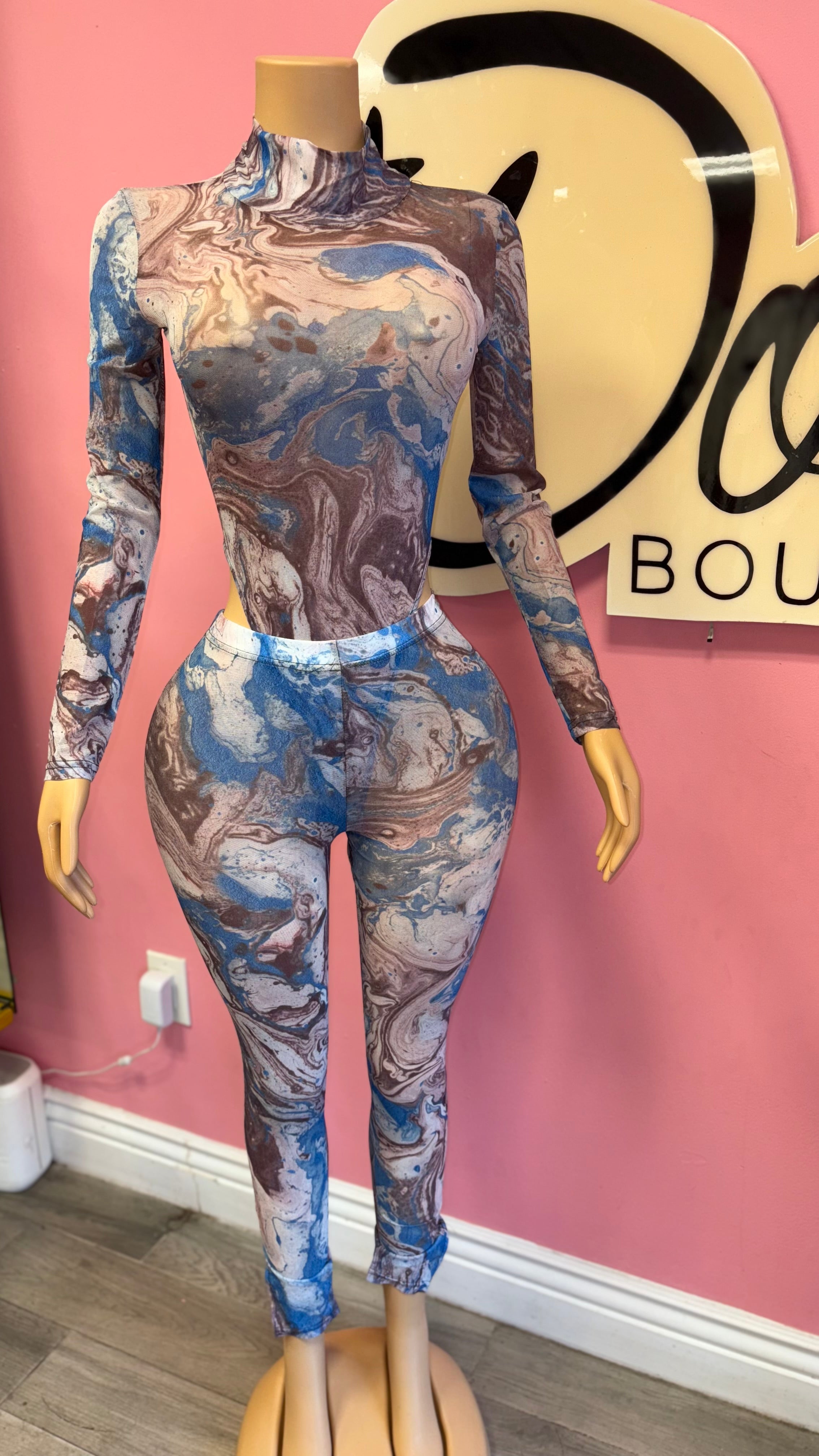 Elevate your style with the Marble Luxe Two-Piece Set, a chic and sophisticated ensemble featuring a mesmerizing marbled print in earthy browns, cool blues, and soft neutrals. The high-neck, long-sleeve crop top exudes elegance while hugging your curves, and the matching high-waisted leggings offer a sleek, sculpted fit. Perfect for a stylish brunch, night out, or fashion-forward statement, this set pairs beautifully with heels and minimal accessories for a bold yet effortless look. Great stretch true to size