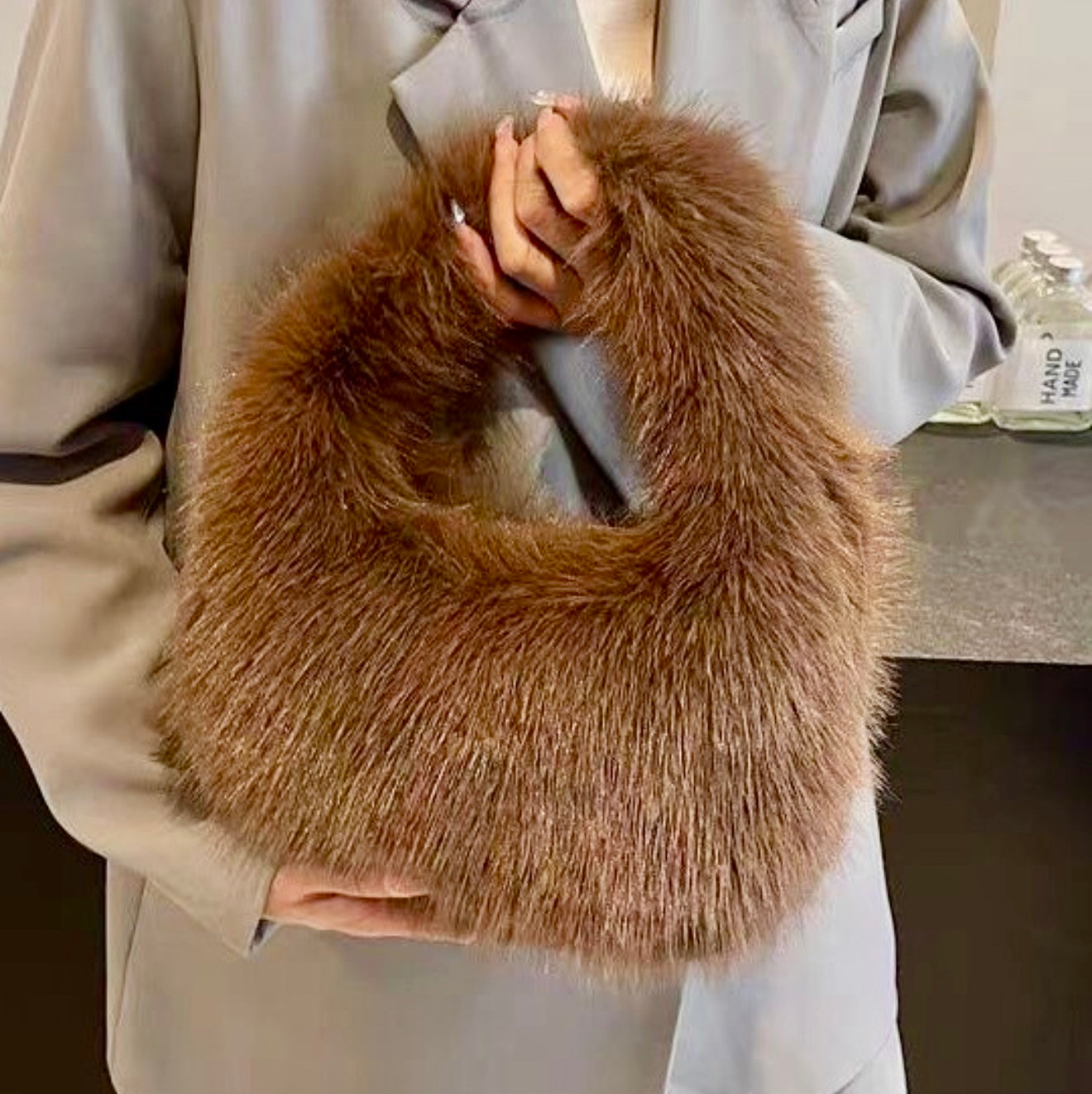 Add instant glam to any look with our Mink Faux Fur Mini Bag. Designed in a soft, plush faux fur with a chic crescent silhouette, this statement bag delivers rich-girl energy with a playful edge. Lightweight yet eye-catching, it’s the perfect finishing touch for nights out, dinner dates, or elevating your everyday fits. Carry it by hand and let the texture do all the talking.